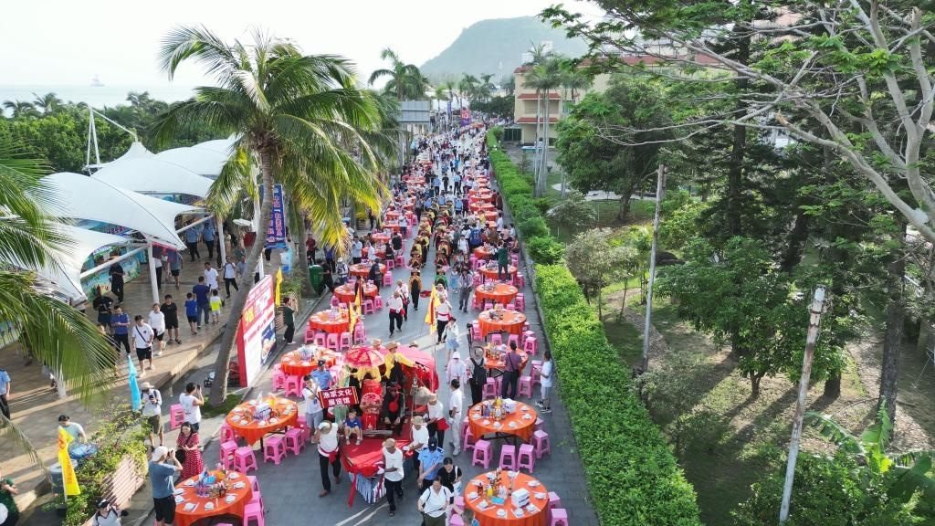 上千桌宴席沿街擺開,來自五湖四海的游客和當地漁民們歡聚一堂,沐浴著星光與海風,從五柳紅古魚,到海膽海鮮飯,一道道漁家美食端上餐桌,讓食客品嘗舌尖美味,感受來自海陵島的獨特風味。