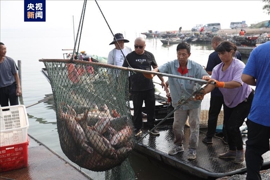 在滿載而歸的漁船上既有鯉魚、鰱魚、草魚、鱖魚、鯽魚,還有河蟹、小龍蝦、甲魚等湖鮮,其中漁民劉忠誠捕捉到一條 41.6斤的鰱魚,獲得今年的鰱魚王稱號(hào)。