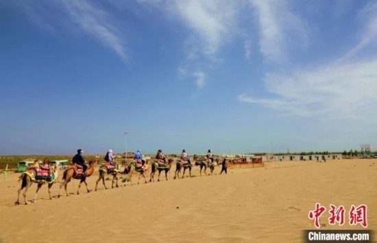 沙漠騎駱駝是沙漠之門(mén)景區(qū)眾多游玩項(xiàng)目中最受歡迎的項(xiàng)目之一。 翟麗瑩 攝