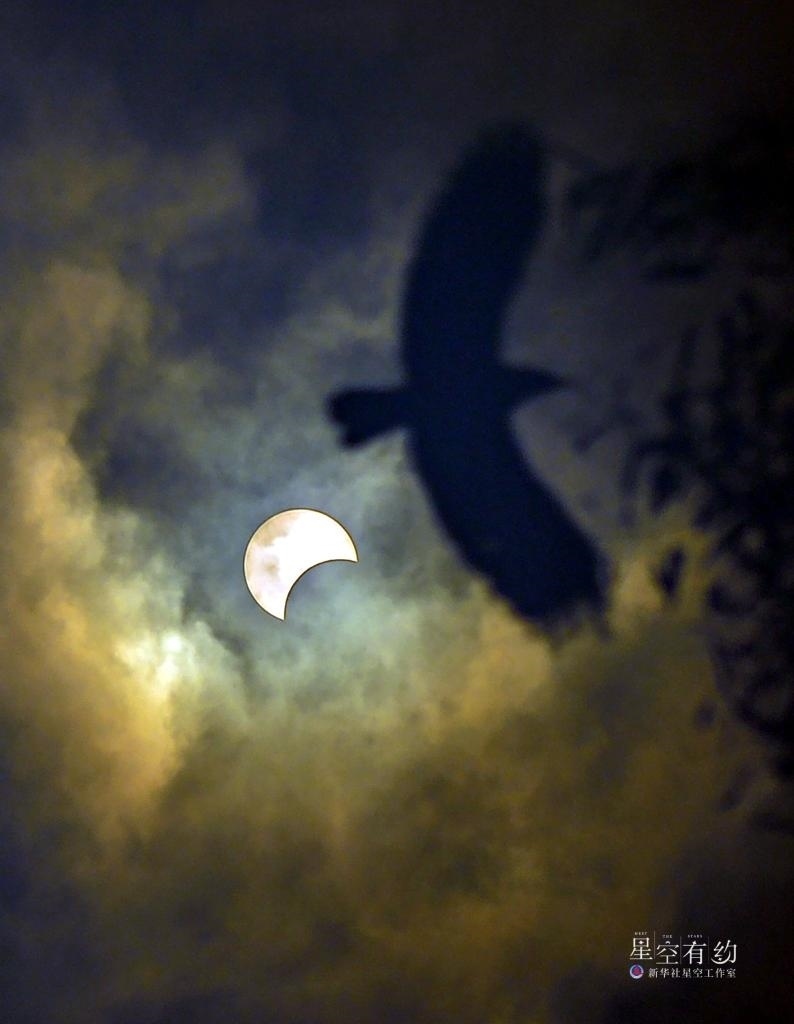 2023年4月20日出現(xiàn)在印度尼西亞雅加達上空的日食景觀。新華社發(fā)(祖卡南攝)
