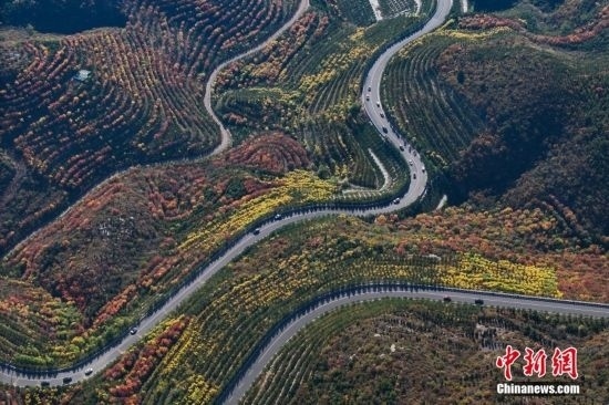 10月15日,航拍山西省太原市天龍山秋景絢麗。近日,天龍山迎來秋景最佳觀賞期。中新社記者 武俊杰 攝