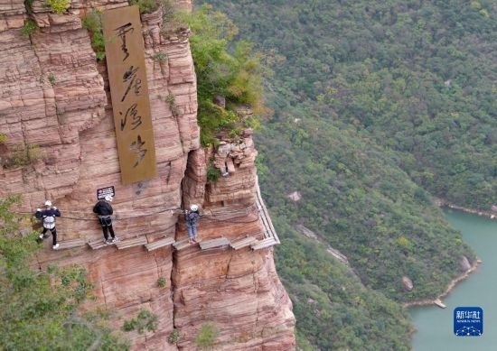 近年來,河南省輝縣市依托南太行山優(yōu)質(zhì)旅游資源,積極探索沉浸式文旅新模式,打造以“崖”為主題的景區(qū),建成投運了“空中巴士”、蹦極等懸崖文旅項目,讓廣大游客沉浸式游覽在懸崖峭壁之中。