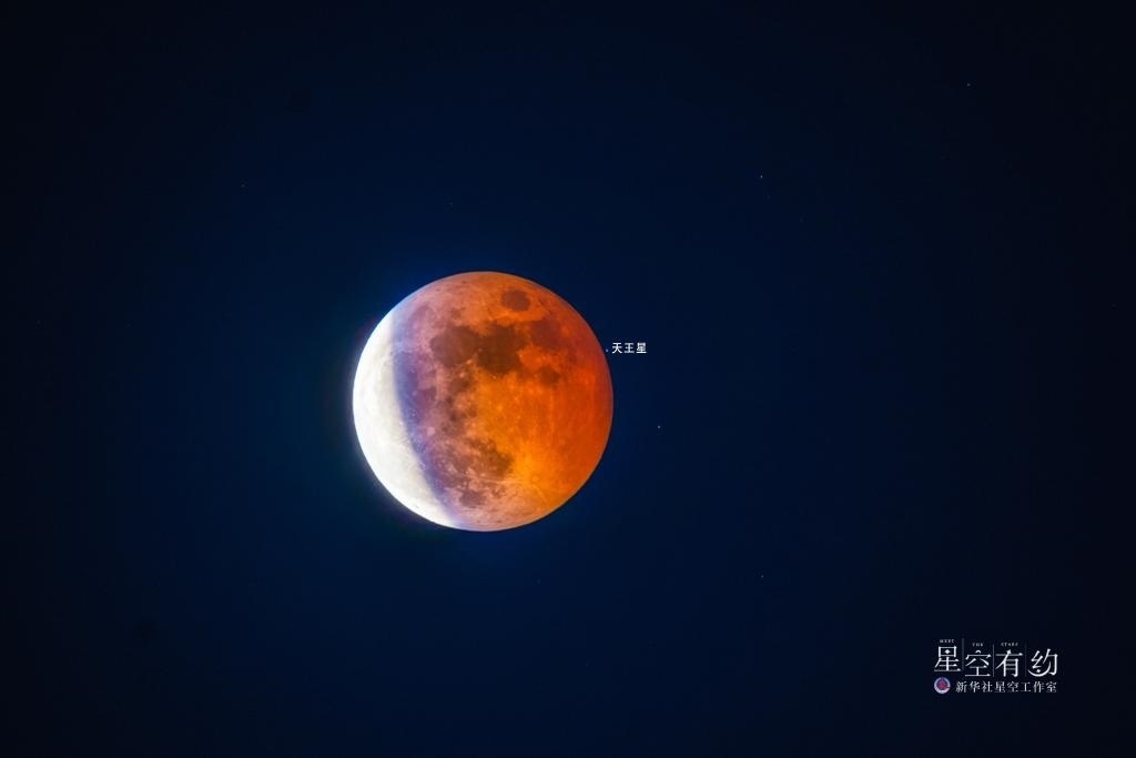 云南星空攝影愛好者張釗海2022年11月8日在云南昆明拍攝的月偏食與天王星“同框”。(本人供圖)