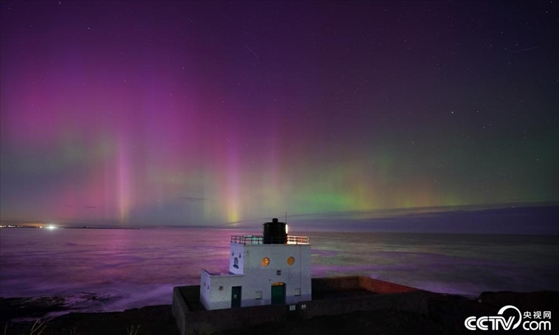 英國(guó)諾森伯蘭郡,天空中出現(xiàn)唯美北極光。