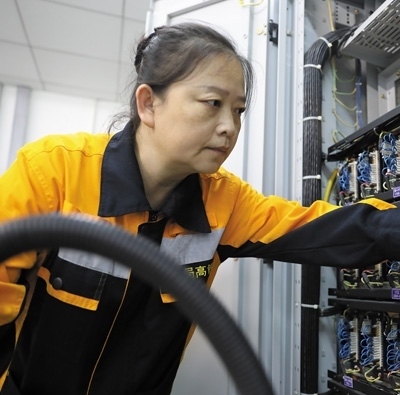 鄭小燕正在對配線進(jìn)行排查核對。和子龍攝