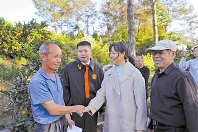 正值果園采摘農(nóng)忙時期,為保證群眾訴訟和農(nóng)忙“兩不誤”,近日,江西省寧都縣人民法院石上人民法庭在當(dāng)事人的臍橙園里,就一起民間借貸糾紛案進行巡回審判。