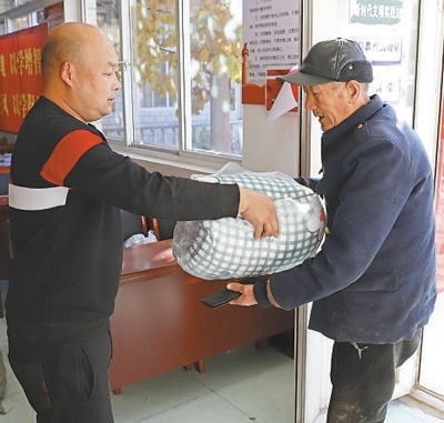 上午10時(shí),走進(jìn)碼頭村黨群服務(wù)中心,正碰上73歲老人杜金亭騎著電動(dòng)三輪車,載著老伴來領(lǐng)新棉被。為保障困難群眾冬季取暖,涿州市民政局為全市殘疾人、“六類人群”免費(fèi)發(fā)放過冬棉被。杜金亭的老伴肢體殘疾,是低保戶?!靶路颗渖闲旅薇唬@個(gè)冬天不愁了!”取上新棉被,杜金亭邀請(qǐng)記者去新家看一看。