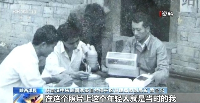 陜西漢中朱鹮國家級自然保護區(qū)管理局原副局長 路寶忠:這個照片上這個年輕人就是當時的我。我們4人小組要在野外去觀察朱鹮,帶上望遠鏡,帶上海拔儀,然后掌握朱鹮的一些活動規(guī)律。它在什么地方活動,這個地方海拔高度有多高,然后我們要做好觀察記錄。