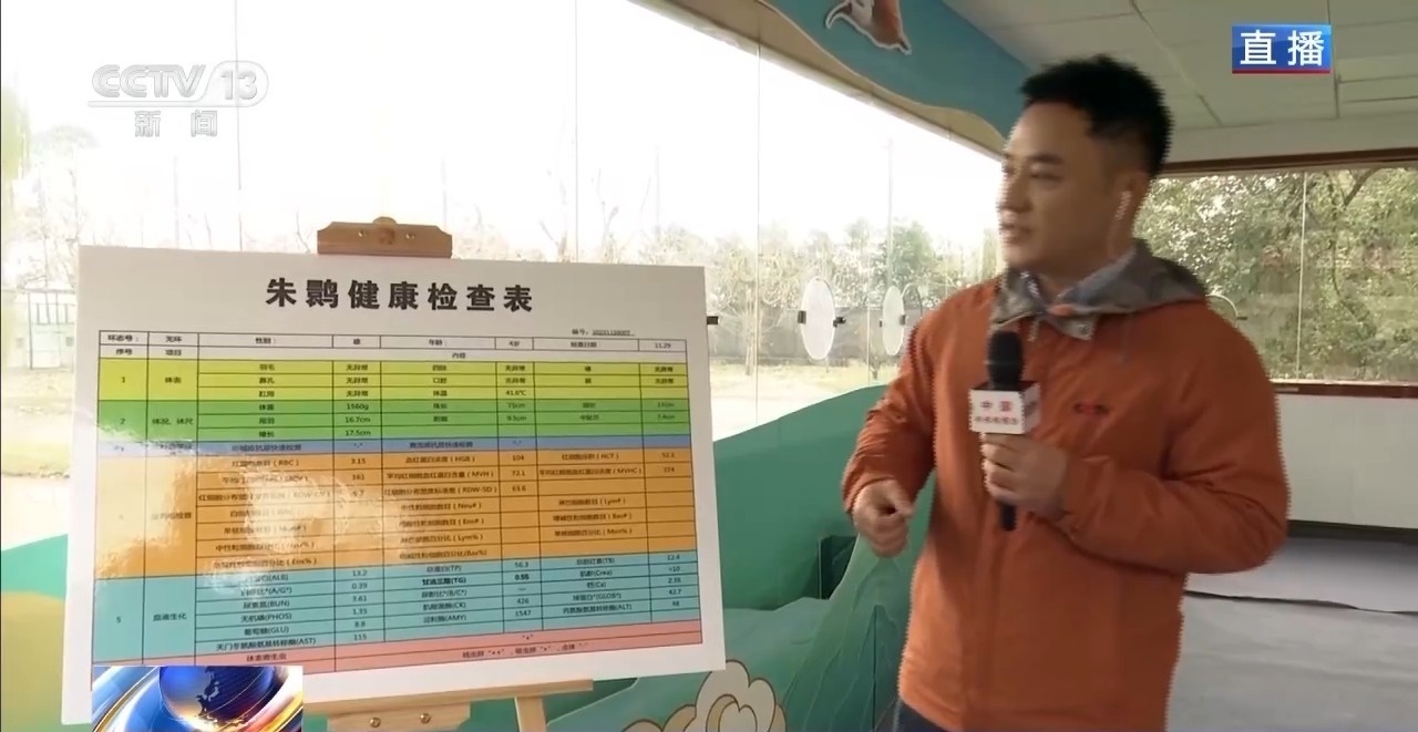 另一邊,保健醫(yī)生們正在給朱鹮抽血。完成抽血之后,朱鹮的血樣會通過機器完成血常規(guī)、生化指標和寄生蟲檢測等50多項檢查,最終形成一張健康檢查表,相當于我們的體檢。這樣精確的健康監(jiān)測,就是保證朱鹮種源質(zhì)量的依據(jù)。