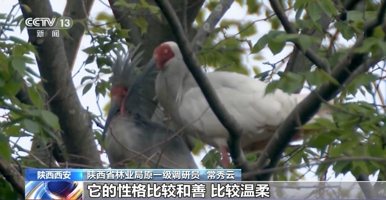 陜西省林業(yè)局原一級調(diào)研員 常秀云:它的性格比較和善,比較溫柔。它不像那些猛禽,哪怕蒼鷺和白鷺都比它要強壯,但是朱鹮不到萬不得已的時候,它是不會向人發(fā)出攻擊,或者向同伴鳥類發(fā)出攻擊的。所以它是一種比較溫文爾雅的鳥類。