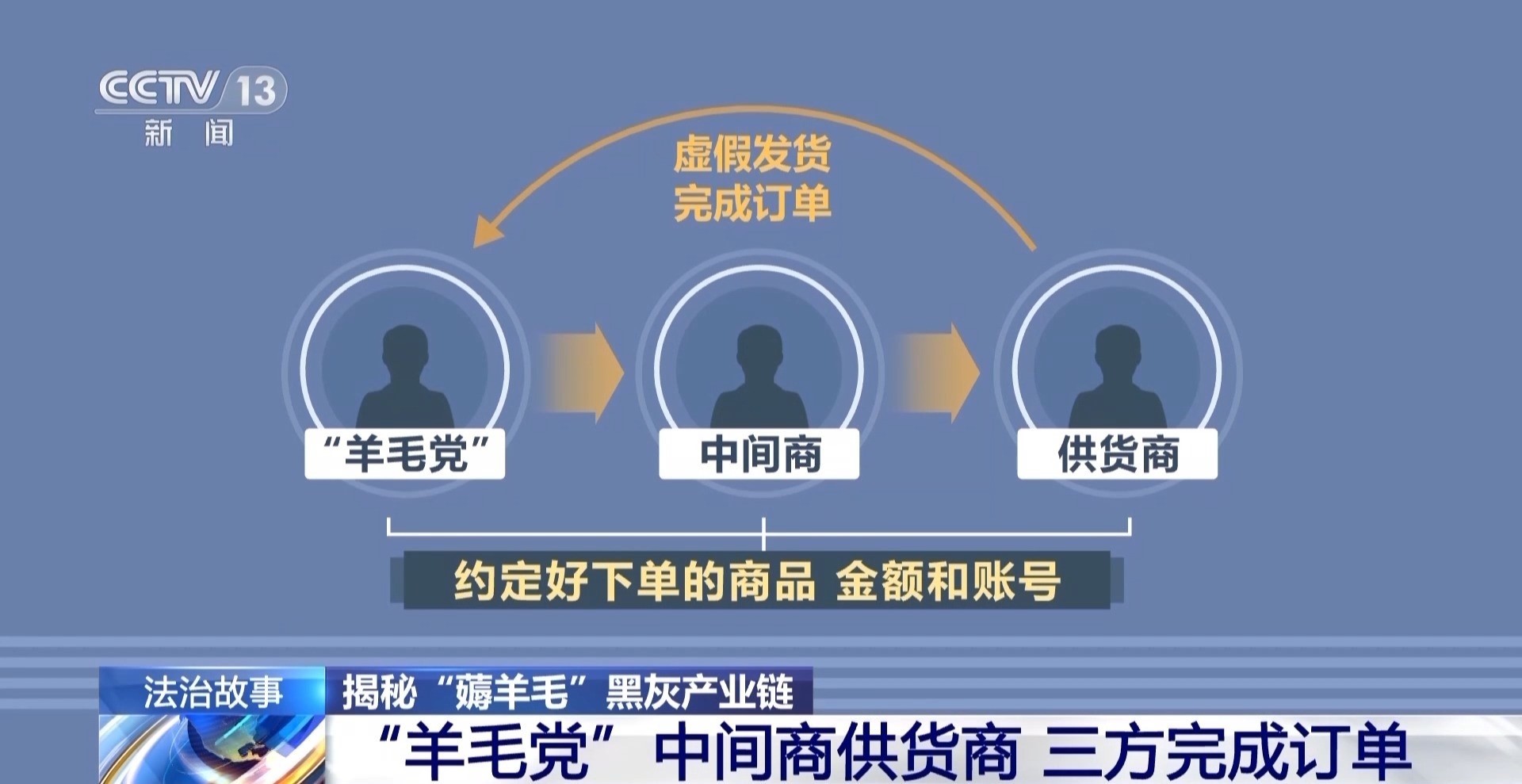 經過梳理警方發(fā)現,這些所謂的“羊毛黨”拿到賬號后,通過中間商與電商平臺的供貨商取得聯系,三方約定好下單的商品、金額和賬號,供貨商通過虛假發(fā)貨的形式完成訂單。