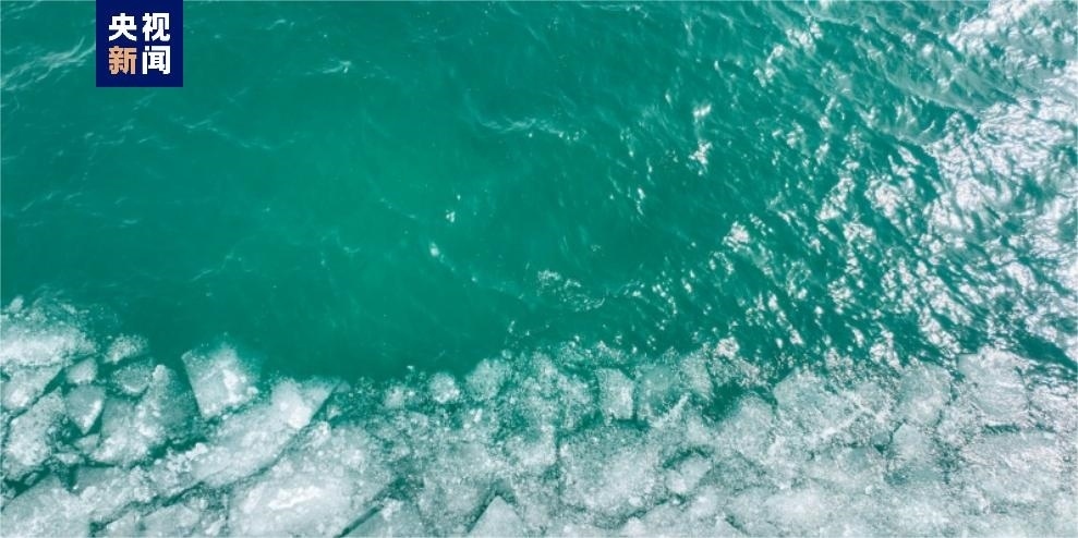 青海湖,湖面上翻涌著的“碎水晶”如一塊塊拼圖,漂浮在湖面,無邊無際,銀光閃閃似水晶。