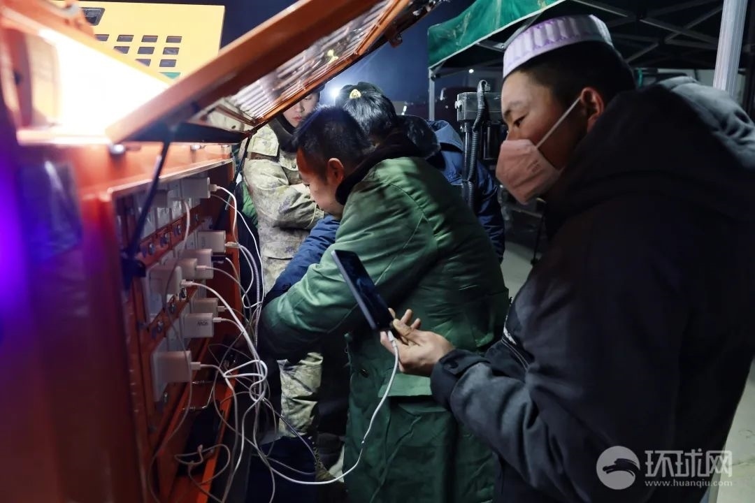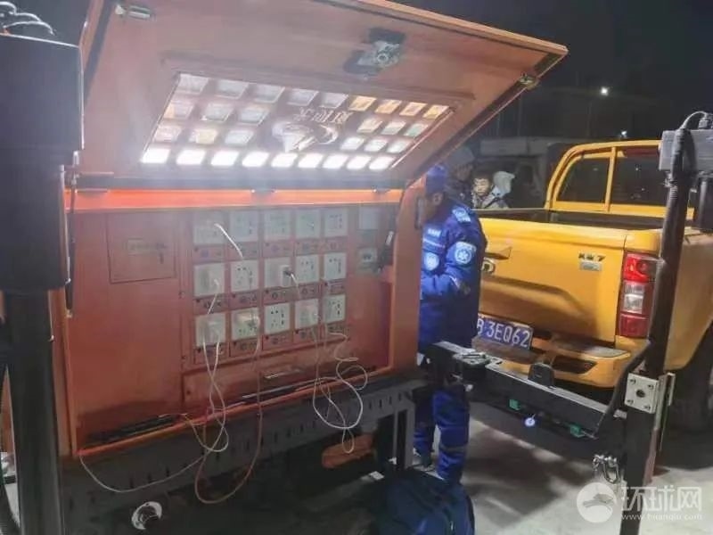 各種新式救援設備的增援也為受災群眾提供了基本的生活便利。記者在現場看到,應急照明無人機、移動式充電站和應急通信車的應用為受災群眾帶來了光明,并確保通信暢通。