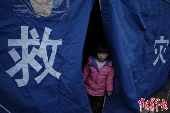 韓福成的兩個(gè)小女兒年紀(jì)小,對(duì)地震沒(méi)什么感覺(jué),“還想著睡覺(jué)”;獨(dú)自在縣中寄宿的大女兒和老師在一起,“不冷,也不會(huì)很害怕”。