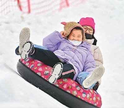 游客在山東省青州市駝山滑雪場(chǎng)體驗(yàn)雪圈項(xiàng)目。王繼林?jǐn)z(人民視覺(jué))