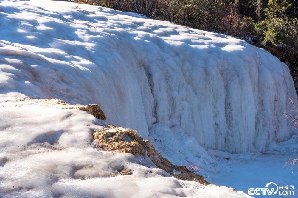 四川阿壩,黃龍風(fēng)景區(qū)現(xiàn)冰瀑景觀。