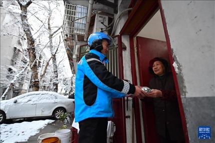 1月21日晚到22日晨,湖南長(zhǎng)沙城區(qū)迎來(lái)2024年首場(chǎng)降雪。針對(duì)行動(dòng)不便的高齡、失能、殘障等獨(dú)居老人,長(zhǎng)沙市天心區(qū)裕南街街道聯(lián)合外賣騎手志愿者為老人免費(fèi)送餐上門(mén),解決獨(dú)居老人在低溫雨雪天氣時(shí)的就餐難題。