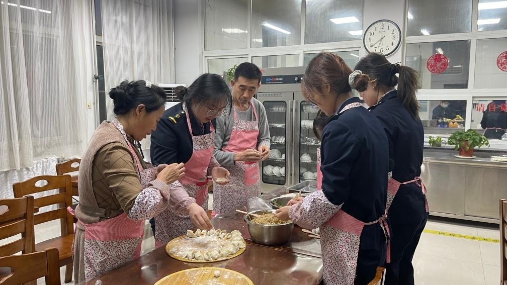 18時許,他們邀請王靚怡一家人以及與她同批入職的呂非凡、王悅、姜紅南等3名東北女孩,來到車站食堂包餃子。