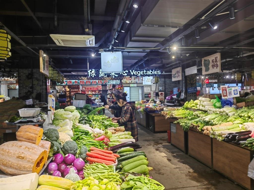 市民在成都益民菜市長(zhǎng)順街店買菜。新華社記者 李倩薇 攝