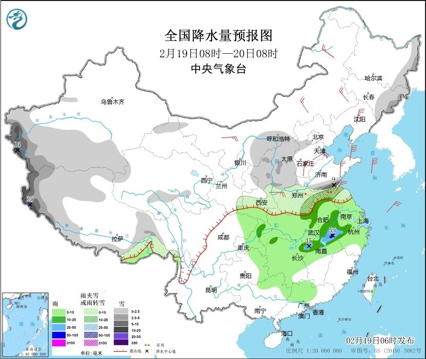 今天白天到夜間,新疆南疆西部山區(qū)、西藏西部、山東南部等地部分地區(qū)有大到暴雪,局地大暴雪(20~25毫米);蘇皖北部、河南中部等地部分地區(qū)有凍雨。黃淮西南部、江淮西部、江西北部等地部分地區(qū)有中到大雨,局地有暴雨。
