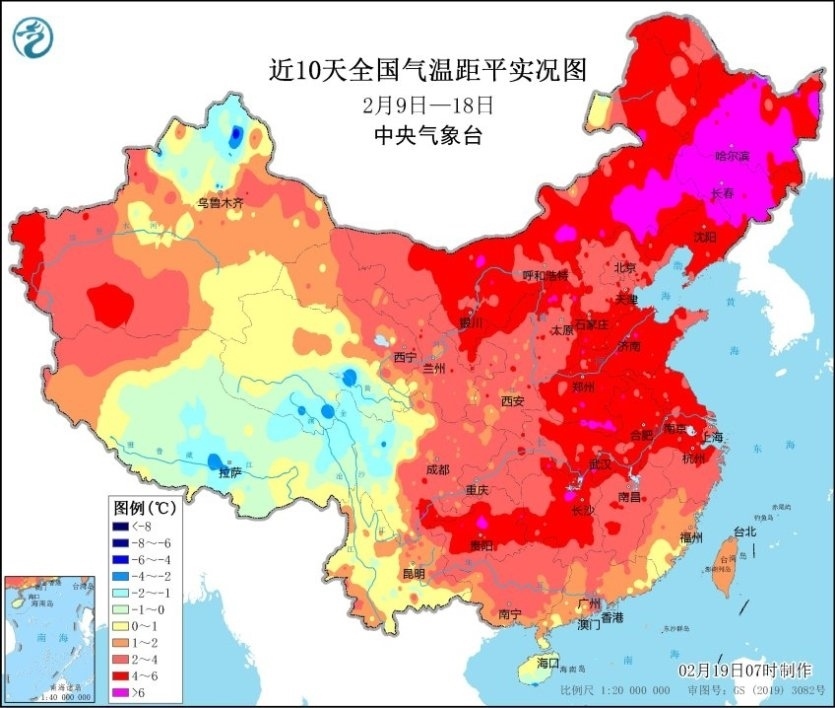 央視網(wǎng)消息:2月19日晨,中央氣象臺繼續(xù)發(fā)布寒潮橙色預(yù)警。預(yù)計,2月19日08時至2月21日08時,內(nèi)蒙古東南部、東北地區(qū)、華北大部、黃淮、江淮、江漢、江南北部等地部分地區(qū)將先后降溫8~10℃,其中,東北地區(qū)中東部、華北南部、黃淮大部、江淮中西部、江漢、湖南北部等地降溫12℃~14℃,東北地區(qū)東部等地部分地區(qū)降溫可達18℃以上。