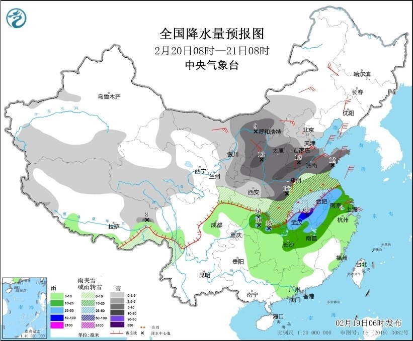 2月19日至22日,中東部地區(qū)將再現(xiàn)大范圍雨雪冰凍天氣。華北西部和南部、黃淮等地有大到暴雪,局地大暴雪;南方雨勢強,并伴有雷暴、短時強降水和冰雹等強對流天氣。河南、安徽、湖北、湖南、貴州等地的部分地區(qū)將先后出現(xiàn)凍雨或冰粒。