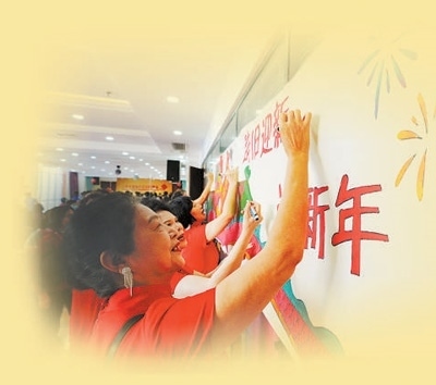 盛康園社區(qū)居民舉行迎新春聯(lián)歡會,居民在畫布上寫下新春心愿。本報記者 李家鼎攝