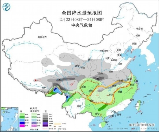 全國降水量預報圖(2月23日8時-24日8時)