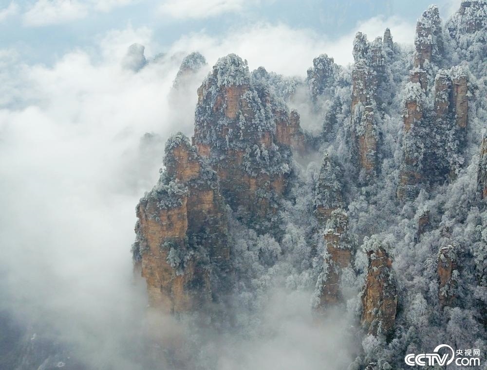 湖南張家界現(xiàn)霧凇景觀,云海繚繞“仙氣飄飄”。
