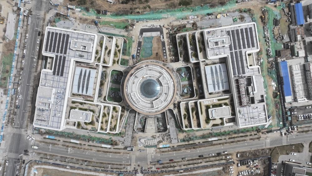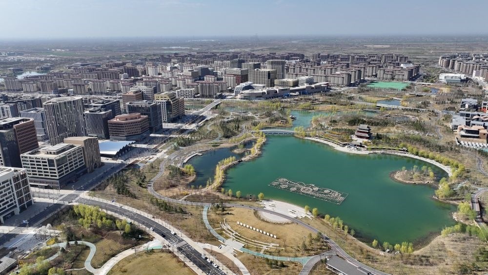 ↑這是雄安新區(qū)商務服務中心(3月30日攝,無人機照片)。