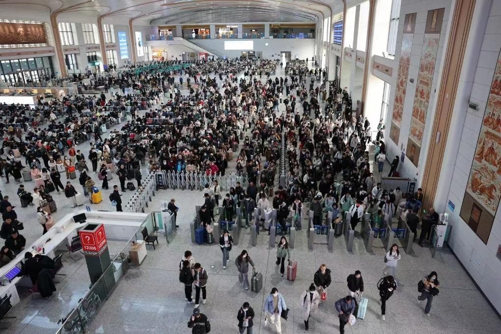 假期期間的淄博火車站候車大廳。(淄博市張店區(qū)委宣傳部供圖)