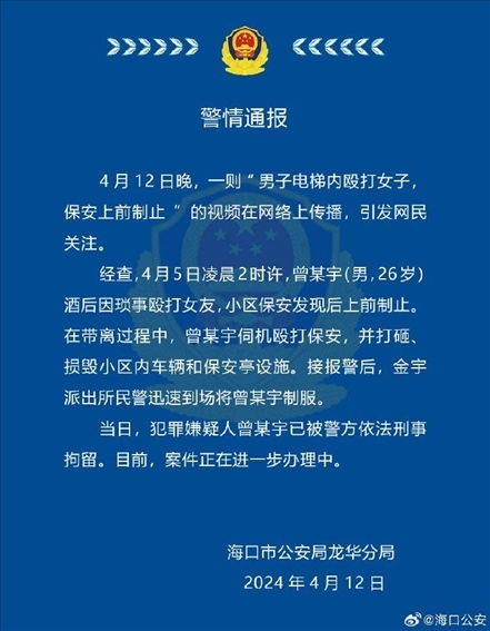 ·男子酒后毆打女友被保安制止,??诰剑悍缸锵右扇艘驯恍叹小?/p>