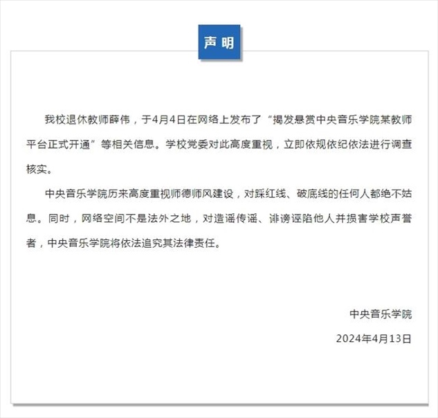 ·中央音樂學(xué)院回應(yīng)學(xué)校系主任被舉報(bào):立即調(diào)查,絕不姑息。