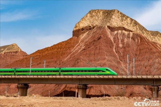 動(dòng)車組列車疾馳在蘭新高鐵上,與錦繡山河構(gòu)成了一幅幅優(yōu)美的動(dòng)態(tài)畫卷。