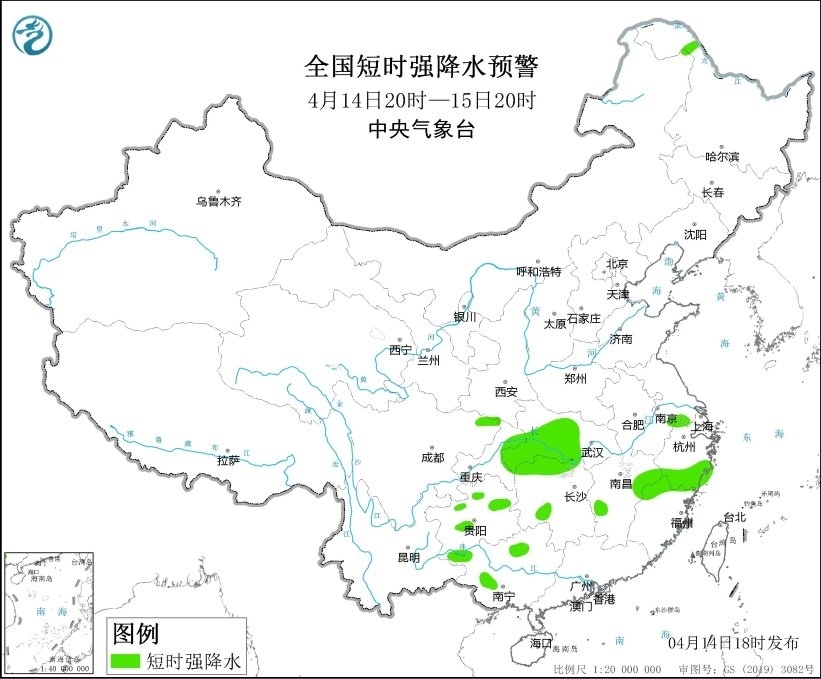 央視網(wǎng)消息:中央氣象臺4月14日18時繼續(xù)發(fā)布強對流天氣藍色預警。