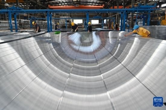 5月1日,位于河南省沁陽(yáng)市的廣東興發(fā)鋁業(yè)(河南)有限公司擠壓車(chē)間,工人在生產(chǎn)線上工作。
