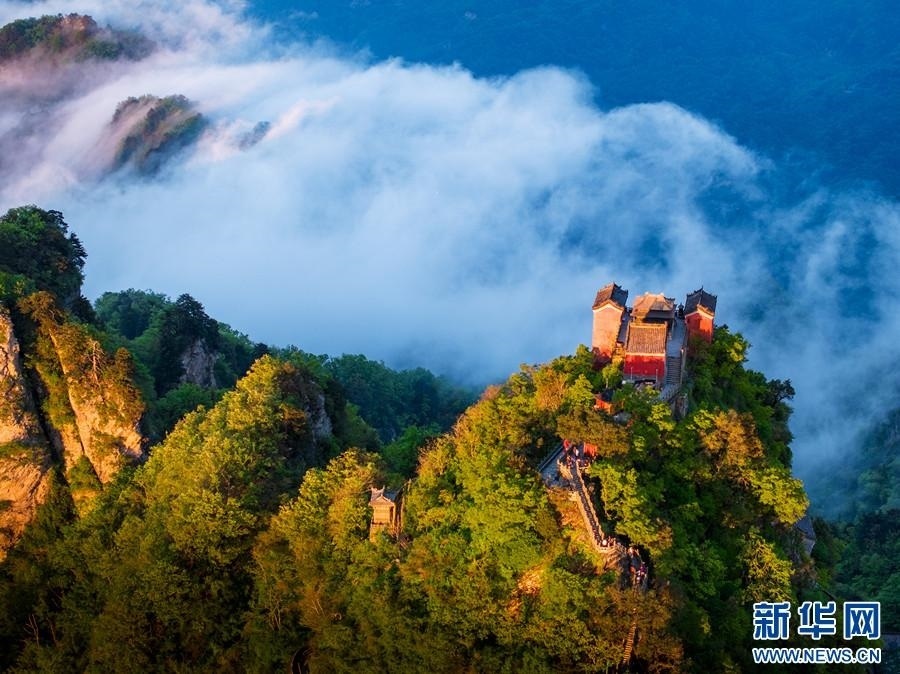 五月的武當山,云霧升騰,浩瀚無垠,靈性的古建筑若隱若現(xiàn),如同水墨畫卷,勝似仙山瓊閣,氣勢磅礴,蔚為壯觀,給游客帶來無限遐想與向往。