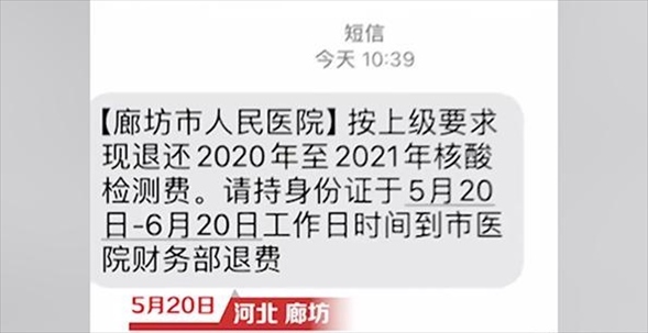 ·廊坊醫(yī)院通知“退核酸檢測費(fèi)”后很多人排隊(duì)退費(fèi),院方:符合條件的才退。