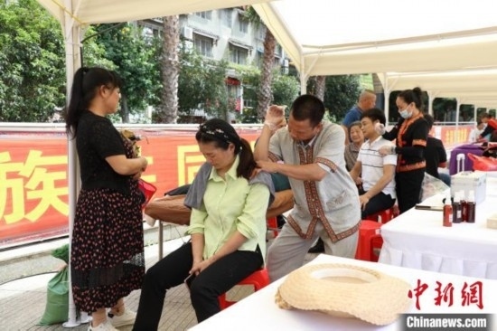 游客在廣西金秀體驗(yàn)瑤醫(yī)。韋鑫 攝