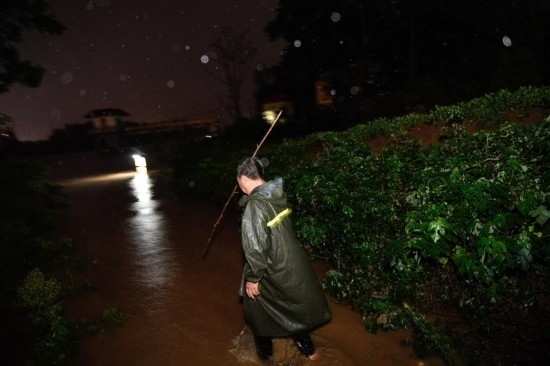 18日晚上,夜色深沉,一陣?yán)坐Q轟然響起,雨還是下了起來(lái)。抓起椅背上的雨衣,抖了抖上面的雨水,呂懷義又開始巡堤工作,銀色的雨幕中,河堤上成排的防汛隊(duì)伍清晰可見……(參與采寫:鄭家寶)