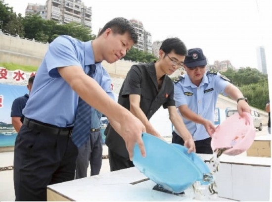 近日,梧州市龍圩區(qū)人民法院聯(lián)合區(qū)人民檢察院、梧州市農業(yè)綜合行政執(zhí)法支隊漁政大隊,在西江梧州段水生生物放流平臺增殖放流魚苗。