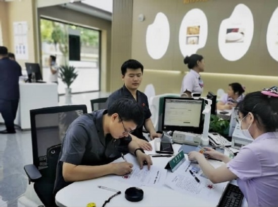 萬(wàn)年法院法官在一家商業(yè)銀行辦理執(zhí)行手續(xù)。李博 攝