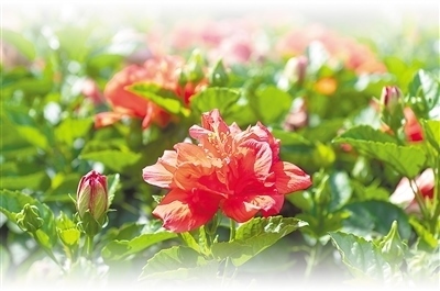 疑若焰生、朝開(kāi)暮落的朱槿花,在我國(guó)古代文學(xué)記載中非常豐富,被賦予了深厚的人文內(nèi)涵?!罢螣熼L(zhǎng)暖無(wú)霜雪,槿艷繁花滿樹(shù)紅。每嘆芳菲四時(shí)厭,不知開(kāi)落有春風(fēng)?!碧拼?shī)人李紳就在詩(shī)中贊嘆,“無(wú)霜雪”環(huán)境下生長(zhǎng)的朱槿花四季常美。