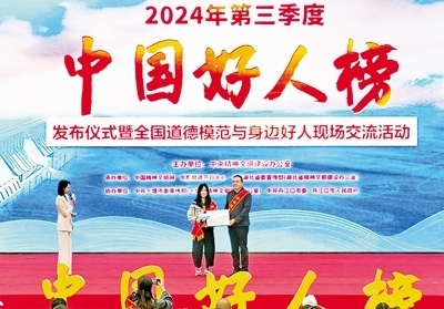 30多年堅(jiān)守海上救援的“漁家子弟”董建海,數(shù)九寒天跳入冰窟救人獻(xiàn)出生命的普通村民高元嶺,自愿守護(hù)烈士英靈43載的退伍老兵顧平,犧牲在防汛一線的90后基層干部李東,21年不離不棄照料患病親人的好兒媳王秀杰……11月12日,由中央精神文明建設(shè)辦公室主辦的2024年第三季度“中國好人榜”發(fā)布儀式暨全國道德模范與身邊好人現(xiàn)場交流活動(dòng)在湖北省十堰市舉辦,經(jīng)各地推薦、網(wǎng)友評(píng)議和專家評(píng)審等環(huán)節(jié),共有152人(組)助人為樂、見義勇為、誠實(shí)守信、敬業(yè)奉獻(xiàn)、孝老愛親身邊好人光榮上榜。