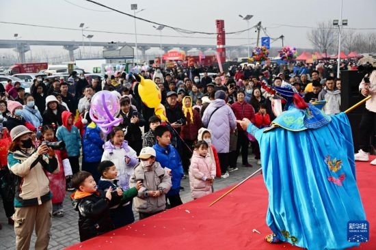1月18日,一名小男孩在泊里大集非遺互動區(qū)領(lǐng)取福字。