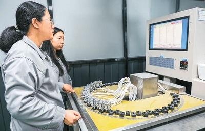 加強(qiáng)食品安全監(jiān)管,為冷鏈設(shè)備制造企業(yè)帶來了發(fā)展機(jī)遇。圖為西科冷鏈江門制造基地的產(chǎn)品實(shí)驗(yàn)室工程師在進(jìn)行電子元件耐用性測(cè)試。