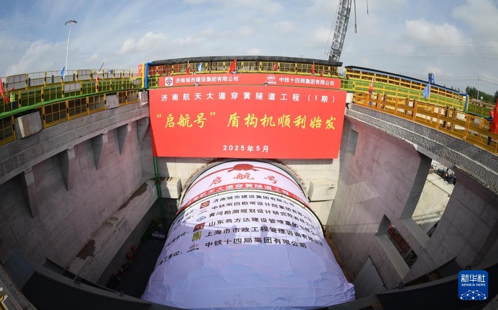 當(dāng)日,由濟(jì)南城市建設(shè)集團(tuán)投資建設(shè)、中鐵十四局承建的濟(jì)南航天大道穿黃隧道工程南線“啟航號(hào)”盾構(gòu)機(jī)順利始發(fā),開挖直徑達(dá)15.06米。