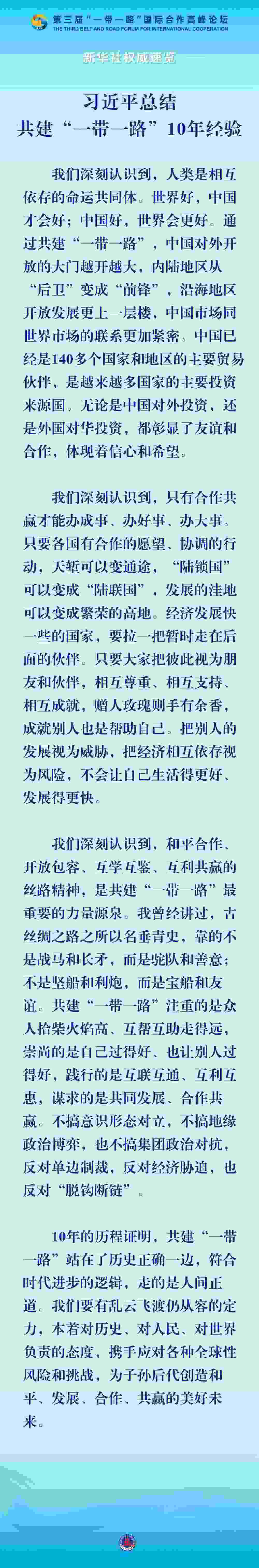 習(xí)近平總結(jié)共建“一帶一路”10年經(jīng)驗(yàn) 10月18日,國(guó)家主席習(xí)近平在第三屆“一帶一路”國(guó)際合......