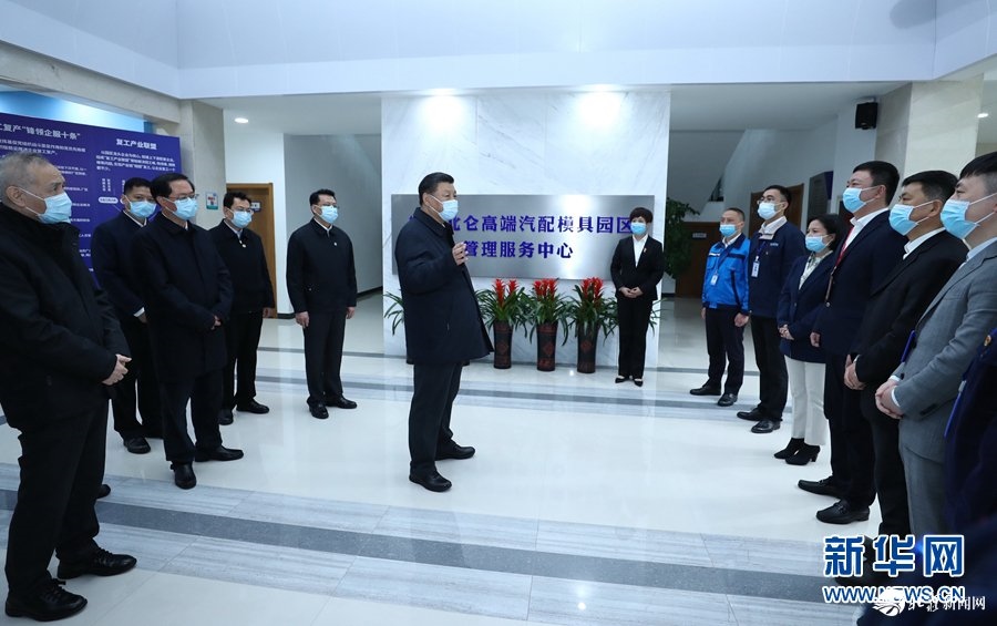 3月29日至4月1日,中共中央總書記、國家主席、中央軍委主席習(xí)近平在浙江考察。這是3月29日,習(xí)近平在寧波北侖大碶高端汽配模具園區(qū)考察中小型民營制造業(yè)企業(yè)寧波臻至機(jī)械模具有限公司,聽取企業(yè)生產(chǎn)經(jīng)營及復(fù)工復(fù)產(chǎn)情況介紹。 新華社記者 鞠鵬 攝