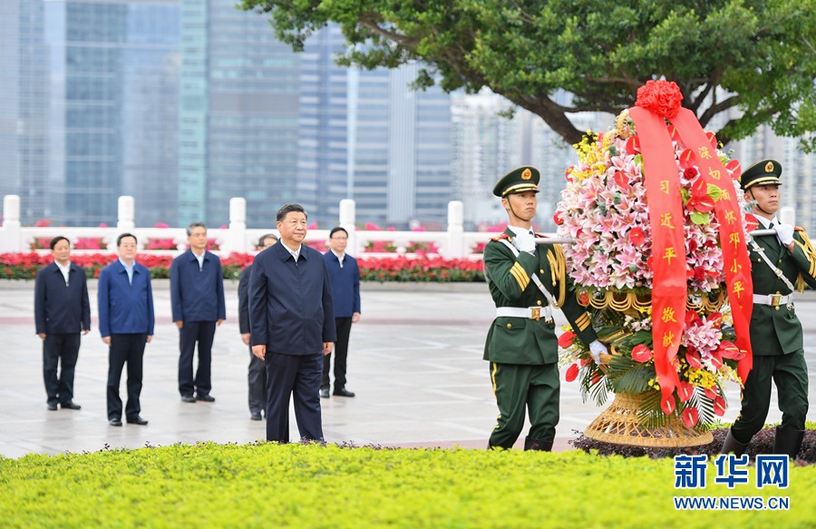 10月14日,深圳經(jīng)濟(jì)特區(qū)建立40周年慶祝大會(huì)在廣東省深圳市隆重舉行。中共中央總書記、國家主席、中央軍委主席習(xí)近平在會(huì)上發(fā)表重要講話。這是當(dāng)天下午,習(xí)近平來到蓮花山公園,向鄧小平同志銅像敬獻(xiàn)花籃。 新華社記者 王曄 攝